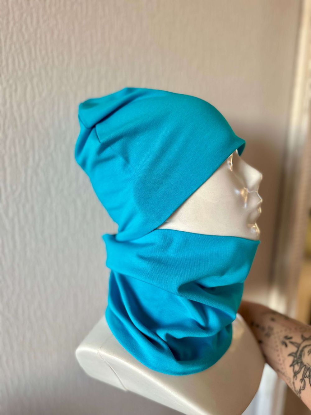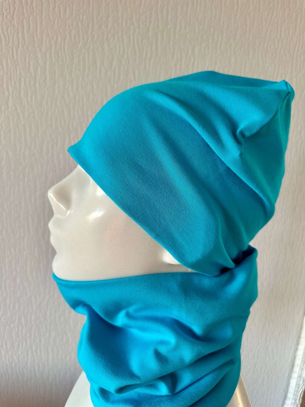 Komplektą sudaro: Dvigubo plono trikotažo kepurė ir mova. Sudėtis: 94% medvilnė, 6% elastanas. Dėl sudėtyje esančio elastano komplektas puikiai priglunda, nespaudžia ir nepraranda savo formos po skalbimo. Medvilnė leidžia odelei kvėpuoti, todėl vaikas neperkais.